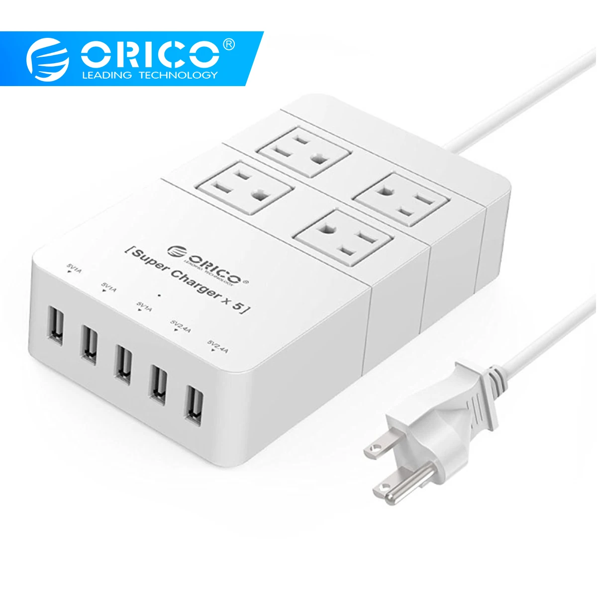 HOT Sale ORICO USB Power Strip Socket US Plug Smart Surge With 4AC 5 USB Port Wall Charger Adapter For Phone